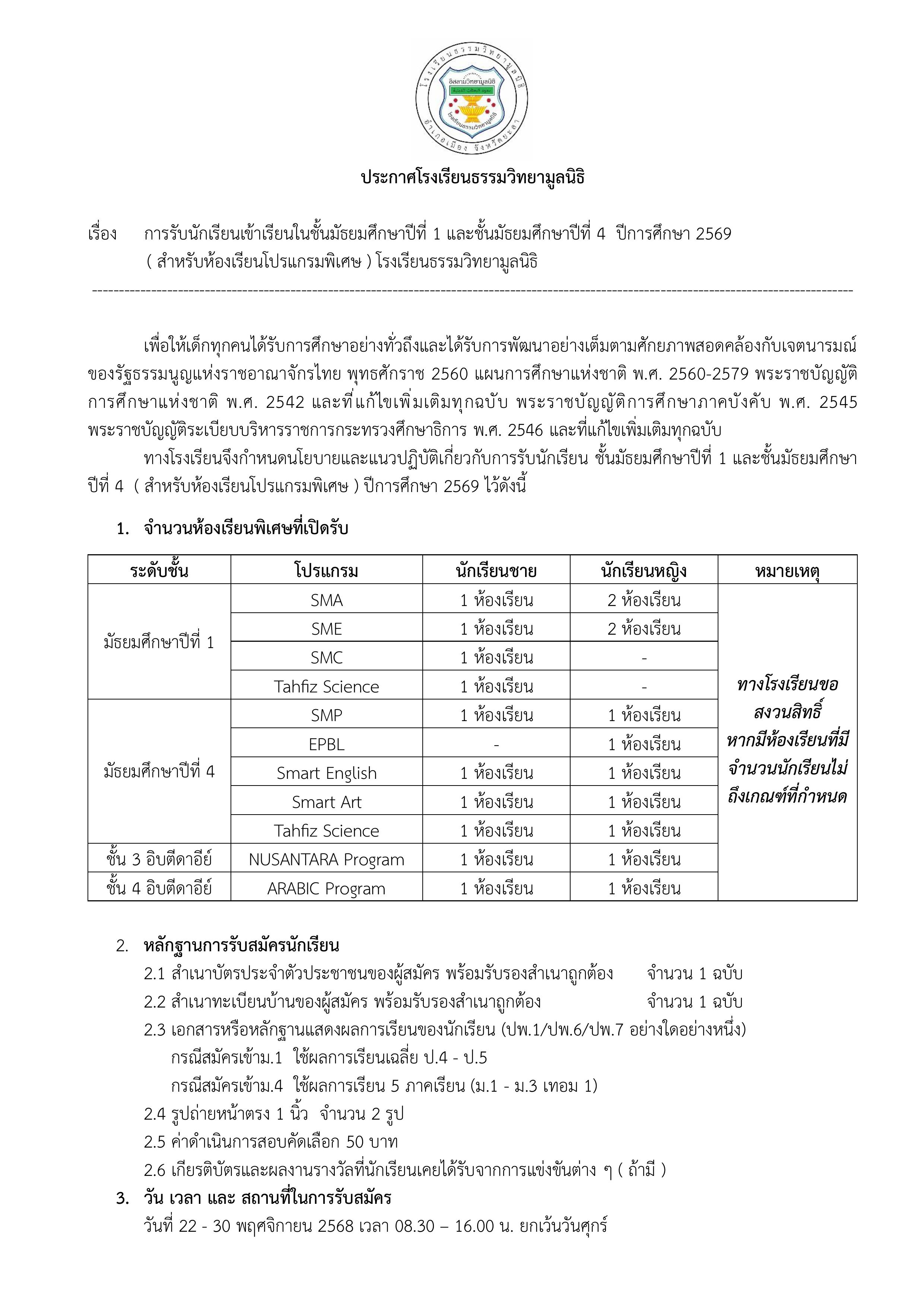 ระบบรับสมัครนักเรียนออนไลน์ ปี 2569